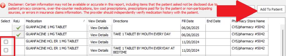 - You can add these if the Surescripts database has record of other medications sent to pharmacies received by other providers for this patient.